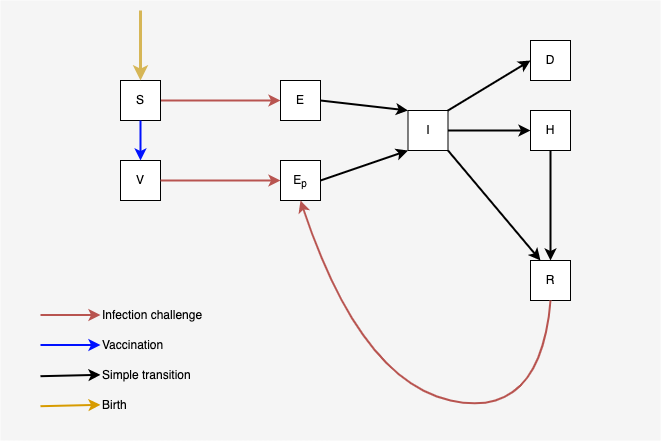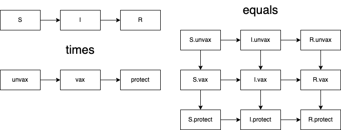 state_vector ~ state_vector + incidence_vector - outflow_vector